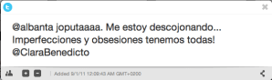 Ni siquiera une ir cogidos de la mano. Ni los cepillos de dientes, que duran un segundo en estar en el cubo de la basura. Ni «mis» gafas sobre el escritorio. Te has empeñado en huir de lo que une bajo una premisa errónea, porque mientras fintabas lo que no significa nada se fueron tejiendo otras redes; pero es que ¿sabes? ésas son inevitables, por muchas barreras que se pongan. La buena noticia es que se han deshecho ya.